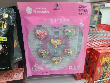 빼빼로 비스킷 : 2,000원, 스피링클 6종 : 3,000원, 하트, 별, 망고: 각각 1,000원에 구매할 수 있습니다.