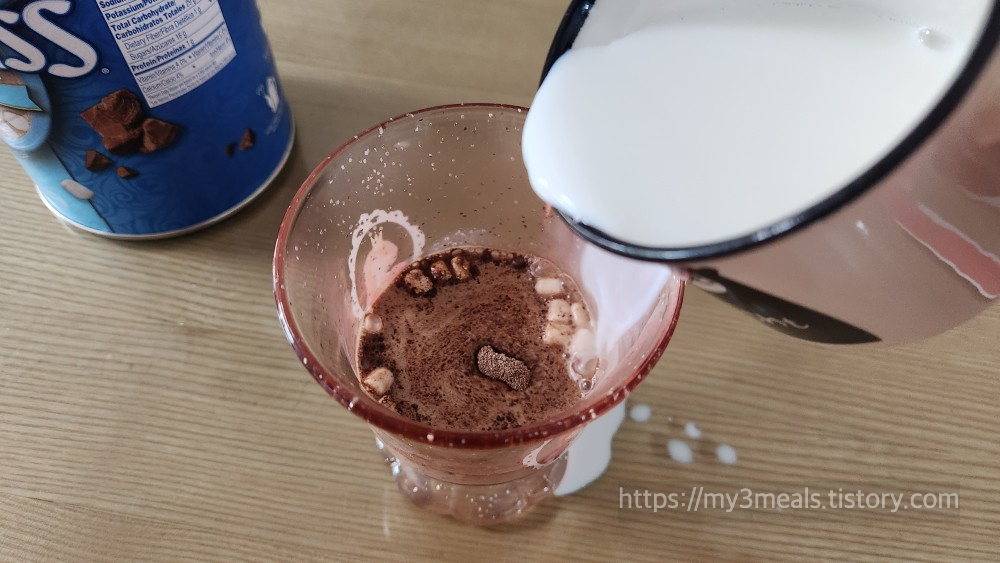 우유로 만들어 마셨을 땐 더 고소하고 크리미한 맛이 느껴졌어요. 스트레스로 지쳐 있을 때 이런 달콤한 음료 한 잔이면 기분 전환하기에 충분했답니다. 한 잔 마시고 나니 마음도 따뜻해지고, 다시 힘낼 수 있을 것 같았어요!