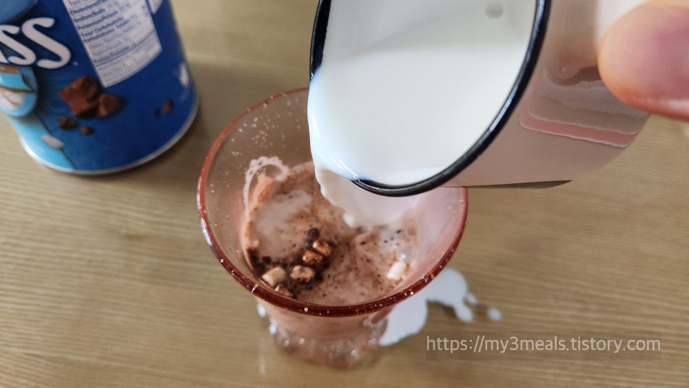 우유로 만들어 마셨을 땐 더 고소하고 크리미한 맛이 느껴졌어요. 스트레스로 지쳐 있을 때 이런 달콤한 음료 한 잔이면 기분 전환하기에 충분했답니다. 한 잔 마시고 나니 마음도 따뜻해지고, 다시 힘낼 수 있을 것 같았어요!