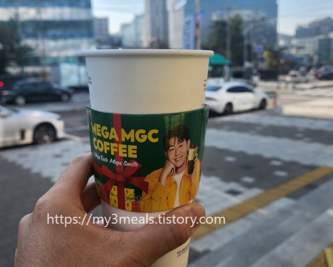 오늘 점심시간에 회사 동료들과 기분 전환도 할 겸 회사 근처를 산책하다가 우연히 **메가커피**에 들르게 되었어요. 겨울 분위기를 담은 신메뉴가 출시되었다는 소식에 자연스럽게 발길이 향했답니다.