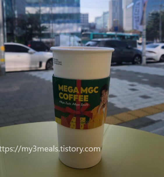 오늘 점심시간에 회사 동료들과 기분 전환도 할 겸 회사 근처를 산책하다가 우연히 **메가커피**에 들르게 되었어요. 겨울 분위기를 담은 신메뉴가 출시되었다는 소식에 자연스럽게 발길이 향했답니다.