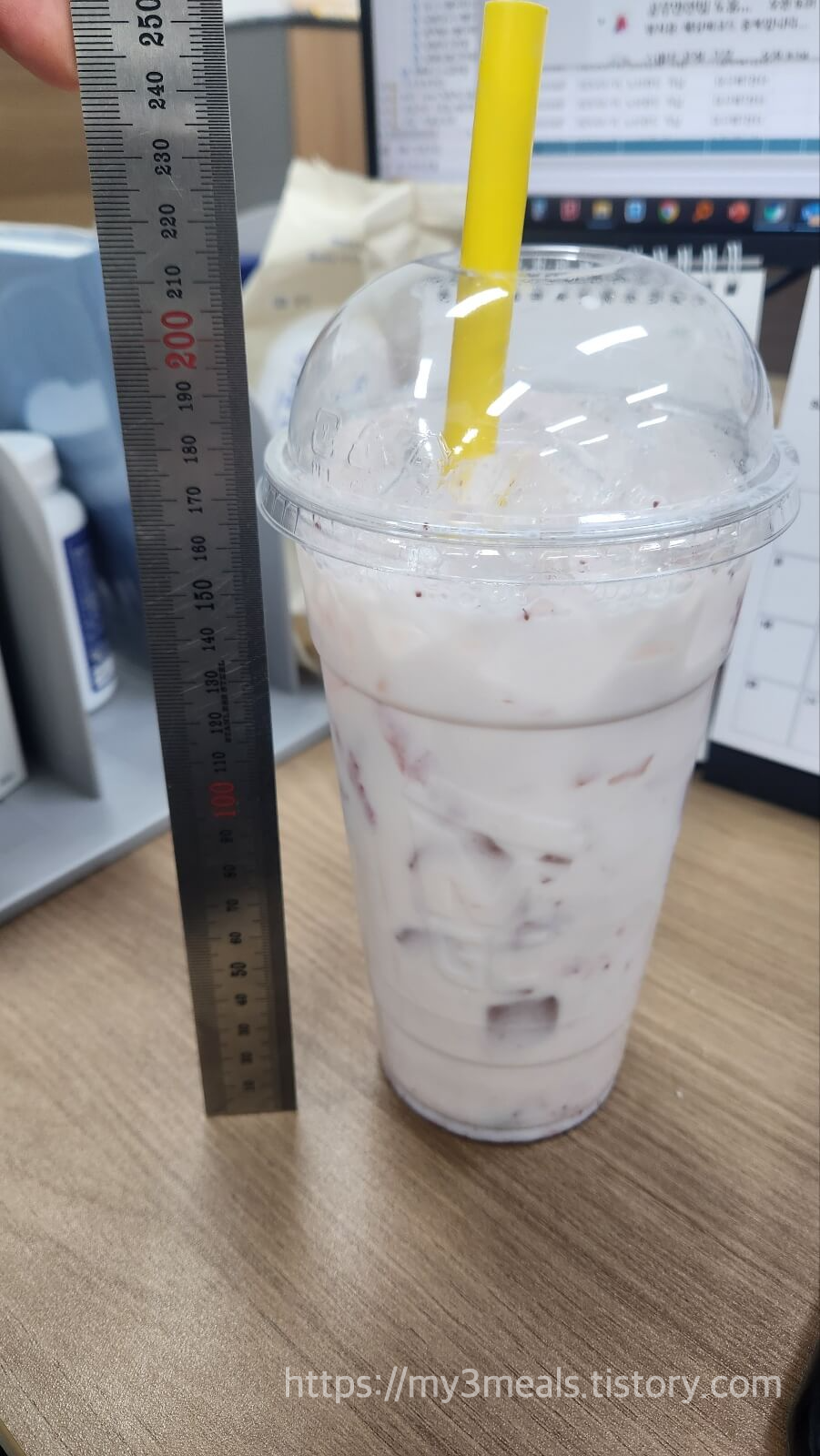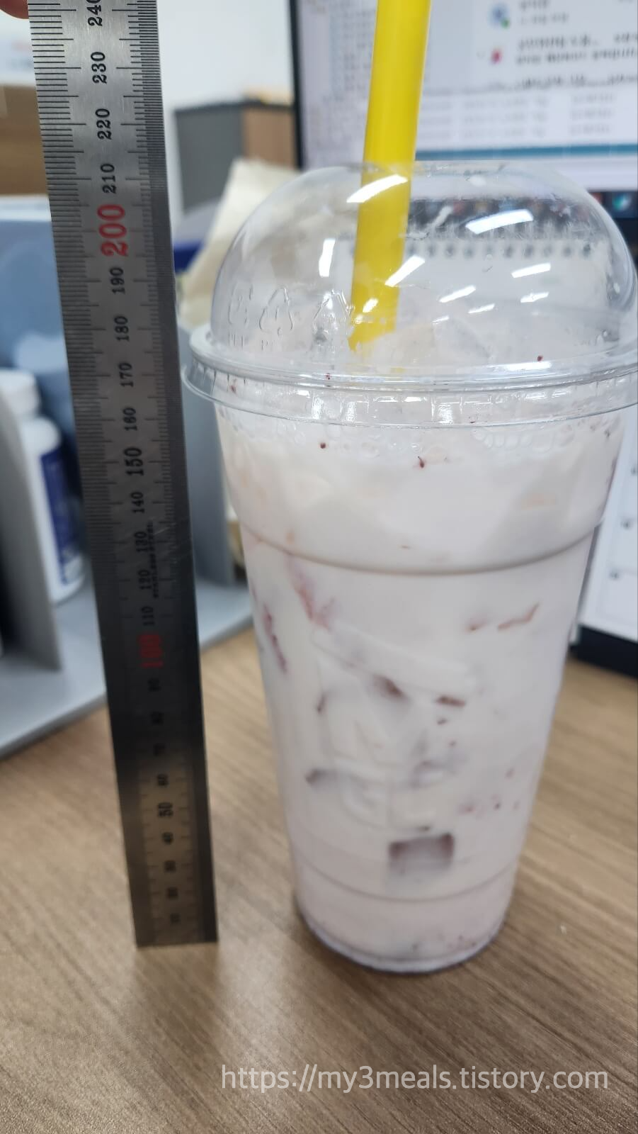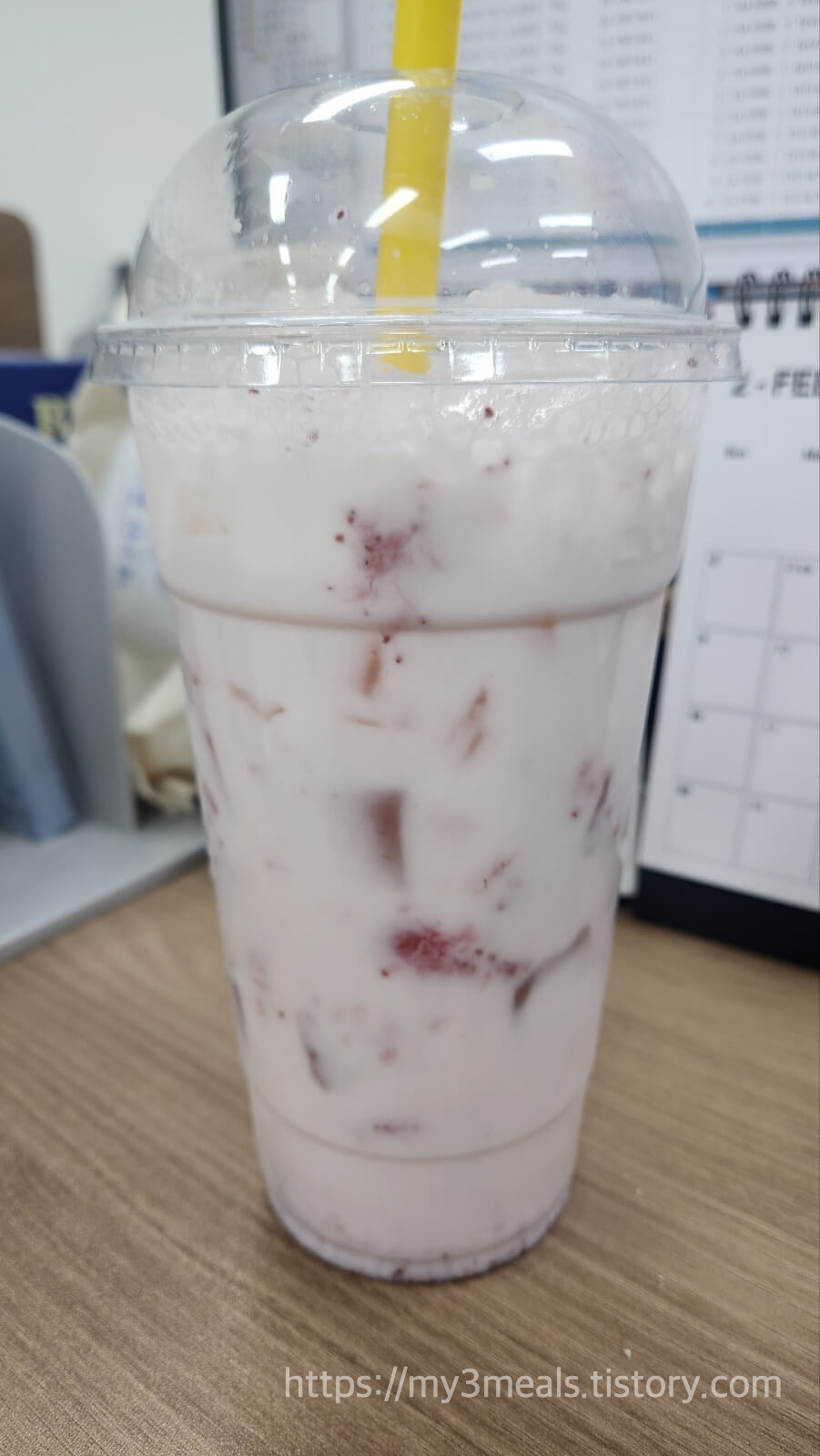 다만, 딸기 맛이 생각보다 진하지 않아 조금 은은한 느낌이 있었어요. 진한 딸기향이나 강렬한 맛을 기대하셨다면 약간 아쉬울 수도 있을 것 같아요. 하지만 아침에 즐기기엔 오히려 이런 은은한 맛이 더 좋았던 것 같아요. 부담스럽지 않으면서도 적당히 달콤하고 상큼한 맛이 입맛을 돋우는 데 충분했답니다. 특히 푸짐한 양 덕분에 한 잔으로도 포만감을 느낄 수 있어, 아침 대용으로도 괜찮은 선택이었어요.