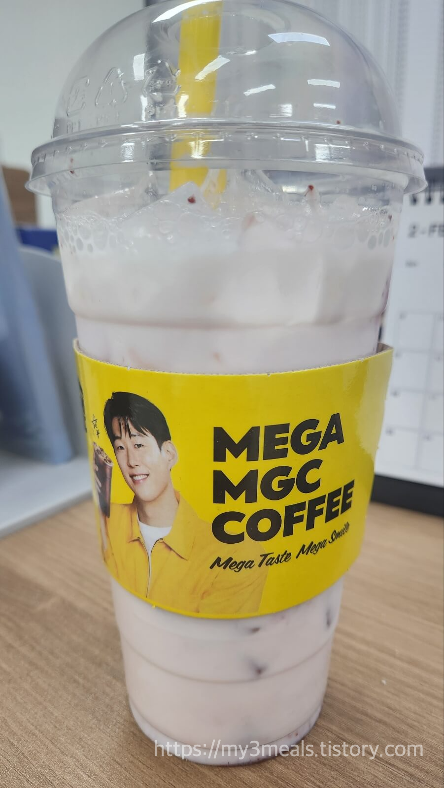 오늘 아침 회사에 출근하고, 상쾌한 하루를 시작하고 싶어 왕메가 딸기라떼를 주문했어요. 이름에서부터 알 수 있듯, 음료 사이즈가 정말 컸고 딸기 과육과 부드러운 우유의 조합이 돋보이는 음료였어요. 계절 한정 메뉴라 지금이 아니면 맛볼 수 없다는 점에서 더욱 특별하게 느껴졌답니다. 푸짐한 양은 물론, 상큼하고 달콤한 맛이 아침의 피로를 날려주는 느낌이었어요.