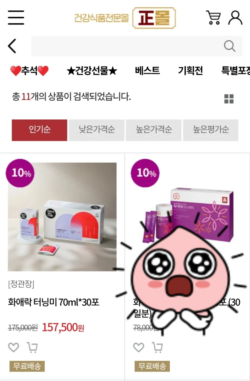화애락 터닝미 정가는 1개월분 30포 기준으로 17,5000원입니다. 하지만 정관장몰(정몰)에서 현재 10% 할인하여 157,500원에 구매할 수 있습니다.