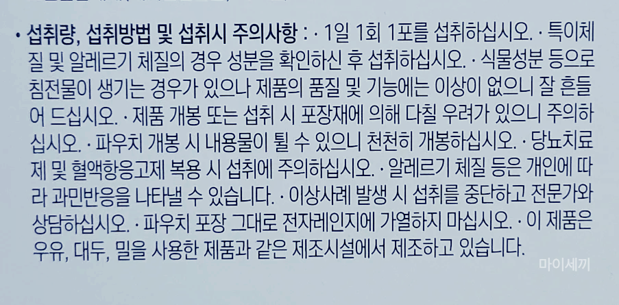 알레르기를 가진 사람들은 과민반응을 나타낼 수 있습니다. 이런 경우 즉시 섭취를 중단하고 의료 전문가와 상담해야 합니다.
