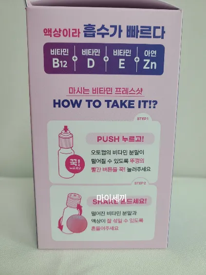 - 흔들기 떨어진 비타민 분말과 액상이 골고루 섞일 수 있도록 흔들어주세요.